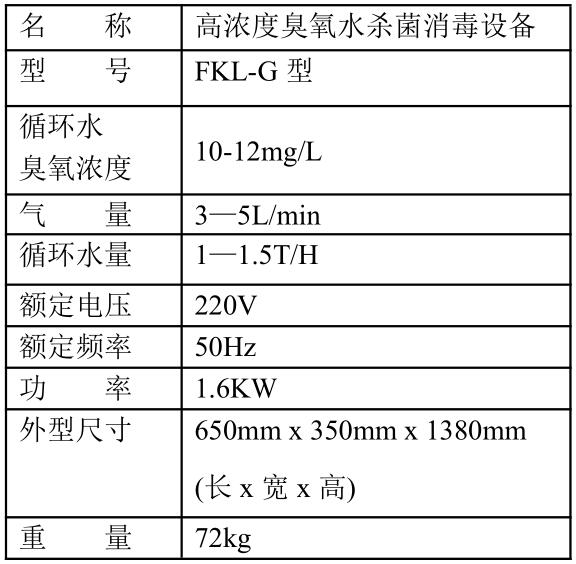 三、技术参数:(如需1.5 T/H以上的高浓度臭氧水,可以选用本公司的高效混合塔方案,可生产0---200 T/H高浓度臭氧水系统)