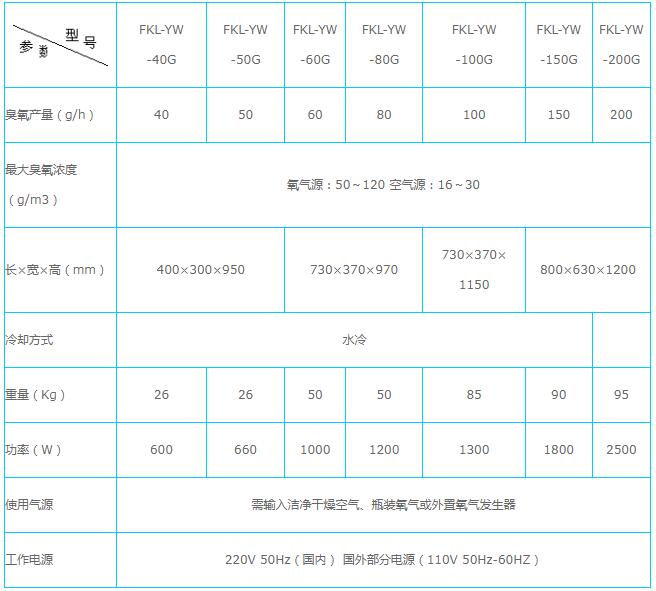 三、智能型臭氧发生器技术参数、图表: FKL-YB-6~32G(注:以下参数、机器图片可能有适当变动)