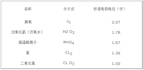 表一,可看出,与氧气相比,臭氧比重大、有味、有色、易溶于水、易分解。由于臭氧(O3)是由氧分子携带一个氧原子组成,决定了它只是一种暂存形态,携带的氧原子除氧化用掉外,剩余的有组合为氧气(O2)进入稳定状态。臭氧是一种氧化性非常强的物质,其氧化还原电位仅次于F2 。利用它的氧化性,可以在较短时间内破坏细菌、病毒和其他微生物的生物结构,使之失去生存能力。所以臭氧工作中没有二次污染产生,给人类的环保需求,这是臭氧技术应用的最大优越性。 臭氧的应用主要在人为的灭菌消毒。这主要是臭氧有很强的氧化能力,氧原子可以氧化细菌的细胞壁,直至穿透细胞壁与其体内的不饱和键化合而夺取细菌生命,它的作用是即刻完成的,臭氧的迅速灭菌效果决定于它的高还原电位,表二、列出了消毒物质还原电位与臭氧的比较。